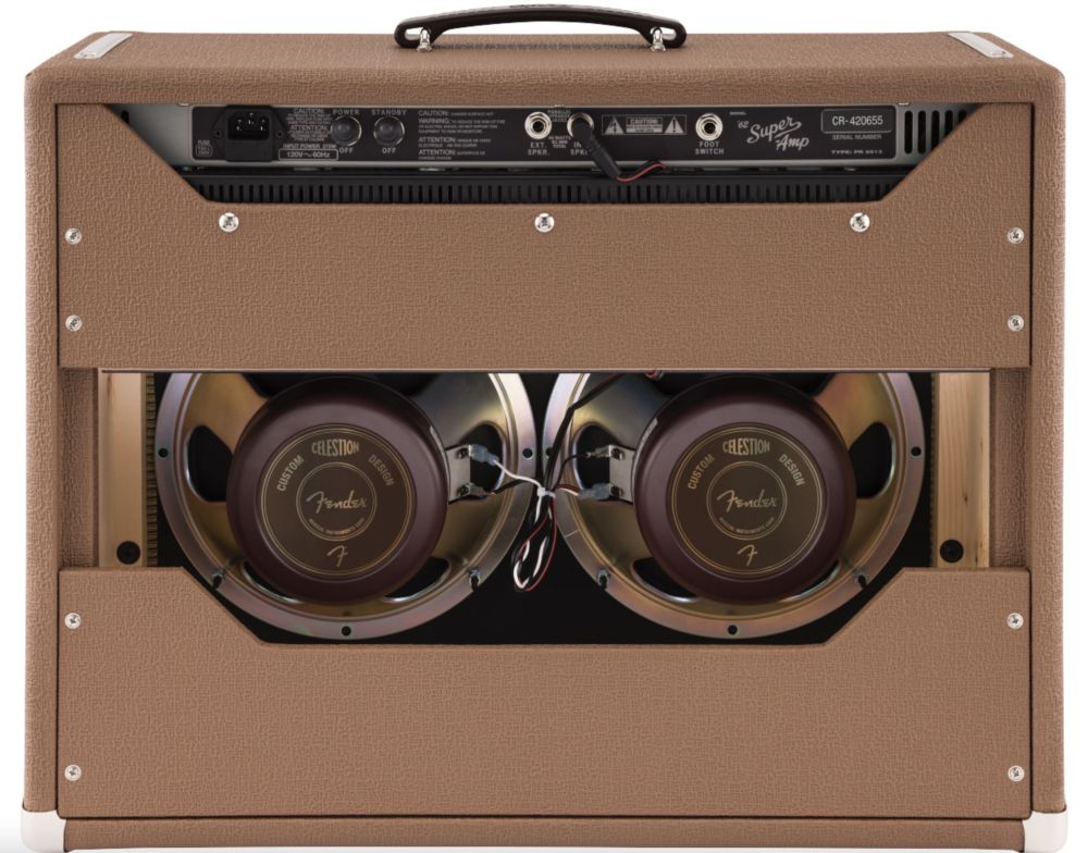 The first of the Fender® brown panel models, the '62 Super™ has an incredibly warm and woody sound when played clean blooming into sweet overdrive when cranked. Along with its special phase-shifting harmonic tremolo, this amp dishes out phenomenal tone at any volume. With dual 6L6 power tubes pushing 40 watts through two 10" Celestion® Custom Design speakers, the '62 Super™ is ideal for recording and gigging.