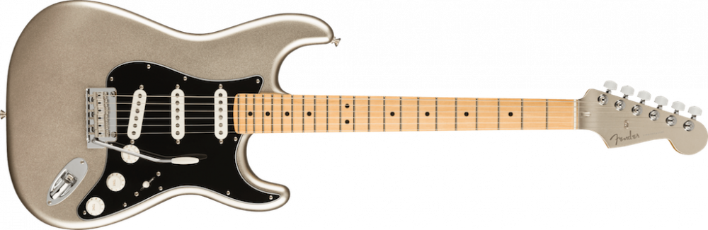 The 75th Anniversary Stratocaster is finished in a striking Diamond Anniversary finish with a matching painted headstock. The maple neck features a “Modern C” profile, medium jumbo frets and a satin finish for supreme comfort and playability. Vintage-style ‘60s pickups provide sweet Strat tone, while a 2-point tremolo delivers smooth vibrato and improved tuning stability. Every Anniversary Stratocaster features a special 75th anniversary neck plate and ships in a deluxe gig bag.