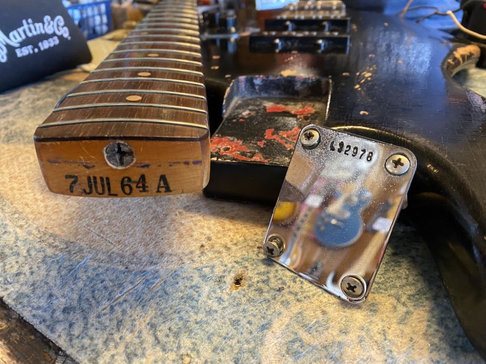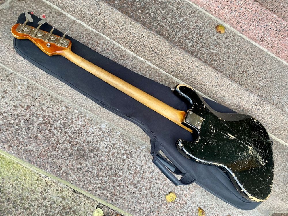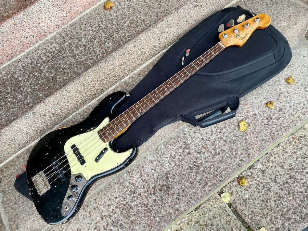 This 1964 Fender Jazz Bass in original condition except following: old pro refin and refret, repro finger rest