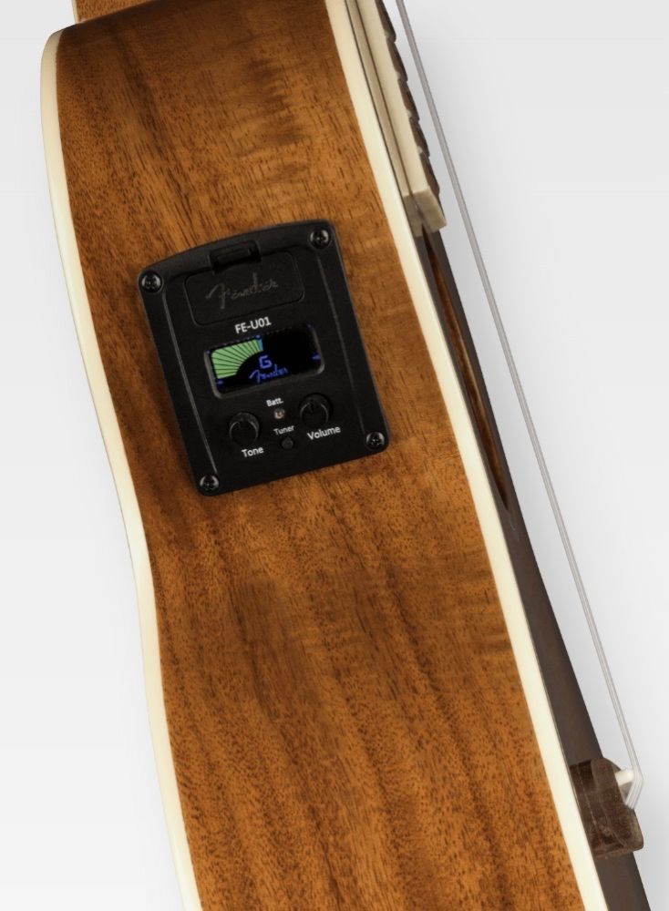 Inspired by the chic coastal California town that's home to many celebrities, Fender's Montecito model offers a mellow, sonorous tone, that matches its elegant, elevated aesthetic. Constructed completely from acacia (a cousin of koa), this tenor-sized uke provides incredible warmth and well-balanced projection. The Montecito's body is appointed with abalone top purfling and a matching abalone rosette for a luxurious touch. The cream binding that outlines the body and fingerboard accentuates the instrument's natural beauty and figure.