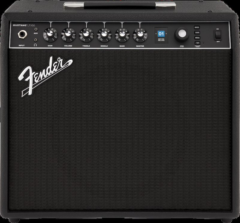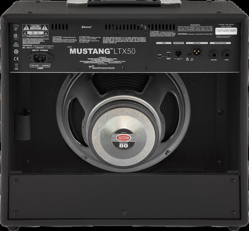 Mustang® LTX 50 is ideal for practice or performance with a 12" Celestion® G12P-80 speaker and an optional gig-ready 5-button footswitch. Onboard Bluetooth® allows you to jam along with your favorite songs as well as create, edit, download and share presets using the Fender TONE® app.