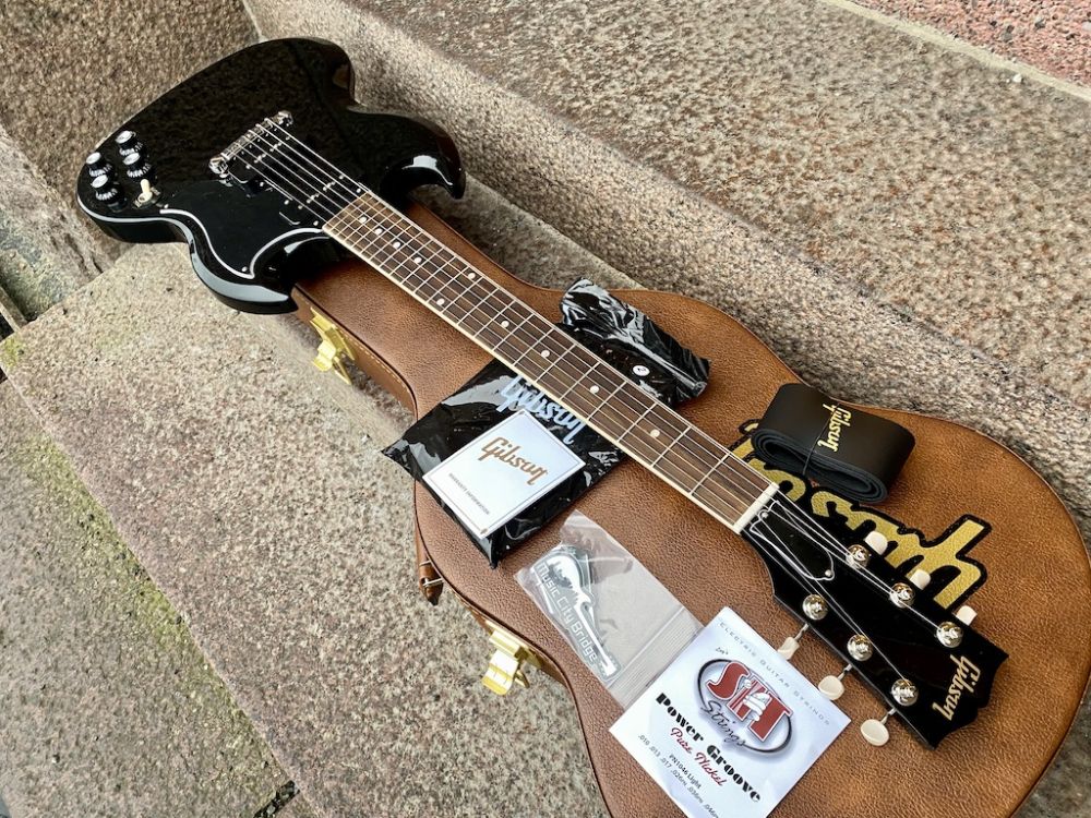 The SG™ Special returns to the classic design that made it relevant, played, and loved -- shaping sound across generations and genres of music. This early 60s style SG Special has the vibe and sound heard on countless classic rock recordings. The comfortable, SlimTaper™ mahogany neck and bound rosewood fingerboard are well known for fast, effortless playing. The two P-90 pickups are noted for their fat snarl when driven and their smooth sweetness when played clean. The SG Special is equipped with the 3-way toggle switch and has hand-wired controls with Orange Drop® capacitors. A hardshell case is included.