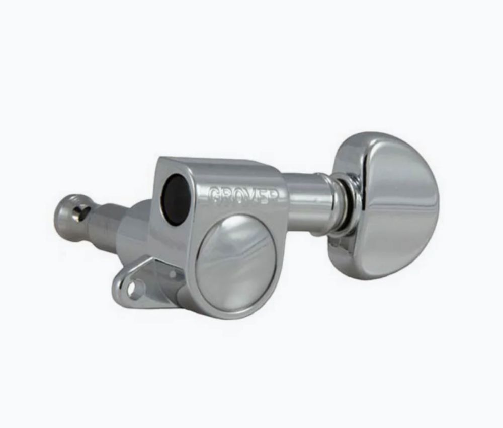 Totally professional in design and performance. Small, lightweight, this precision made machine fits guitar headpieces that will not take full size machines. The mini buttons provide more space for player’s fingers (even large fingers) to tune strings. Gear ratio is 14 to 1. Sealed in lubrication keeps the mini perfect for a lifetime! Includes 5/8″ washers, bushings and wood screws.