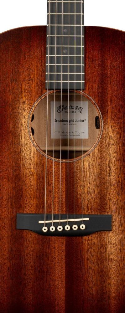 The D Junior E StreetMaster® is your full-scale companion, ready to follow wherever the music takes you. Whether you're chasing inspiration at home, stepping onto the stage, or hitting the road, this compact Dreadnought is always ready to ride shotgun. With its solid sapele body and scalloped spruce X-bracing, it delivers the bold, resonant tone of a full-size Martin in a more travel-friendly form. Sapele adds warmth and midrange punch, while the spruce bracing enhances clarity and projection, giving you a balanced sound that shines in any setting. And with its beautifully distressed satin finish, it feels like a guitar that’s already seen a lifetime of music—broken in, road-worn, and ready for more. Designed for effortless playability, the D Junior E StreetMaster features a full-scale 24.9" neck with a Performing Artist profile and high-performance taper, plus a gently beveled fingerboard edge for extra comfort. Whether you're strumming big open chords or picking intricate leads, every note feels natural. And when it’s time to plug in, Martin E1 electronics—with a built-in tuner—ensure you always sound your best. Complete with a softshell case, this guitar is always packed and ready—because a great guitar should go wherever you do.