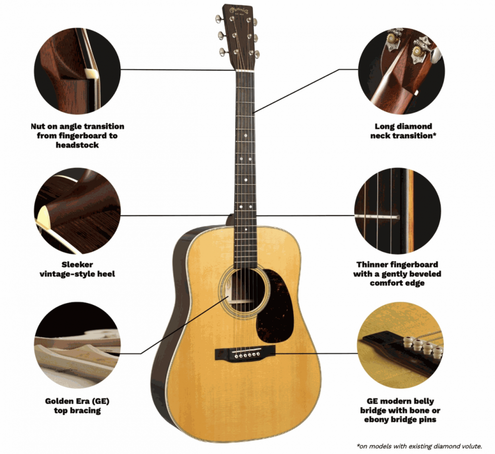 The Martin HD-28 is a legendary acoustic guitar, trusted by generations of players and played by countless icons across genres. Its Dreadnought body size and scalloped bracing delivers the bold, projective tone with strong bass, clear trebles, and rich overtones that has defined acoustic music for nearly a century. Handcrafted with a solid spruce top and solid East Indian rosewood back and sides, the HD-28 offers a resonant, balanced voice for all playing styles. Bold herringbone top inlay and an ebony fingerboard with abalone diamond and square inlays add a vintage-inspired touch. The satin neck, featuring a Golden Era (GE) Modified Low Oval profile, high-performance taper, and 25.4" scale length, ensures effortless playability. Complete with antique white binding, an ebony bridge with bone pins, and nickel open gear tuners, the HD-28 blends timeless craftsmanship with modern versatility. Available in a variety of gloss options, it’s a guitar you can trust to unleash the artist within.