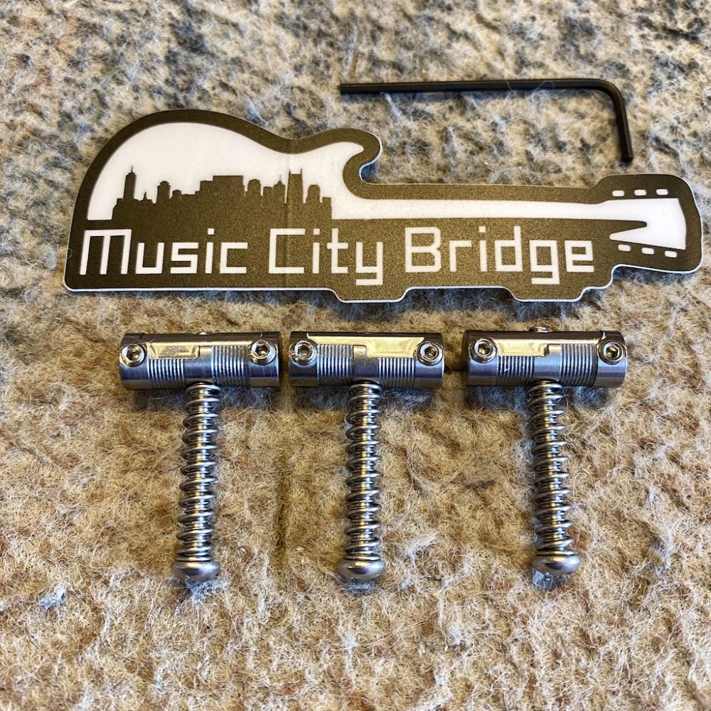 We offer these assembled in a traditional Fender steel ashtray bridge plate, or as a set of three saddles, screws and springs. And because every detail matters, they feature American screws with that same superior 6-32 thread as the originals, and now stainless, so they won’t rust. That’s everything!