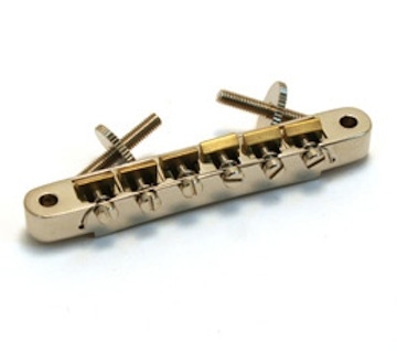 Vintage style tunematic bridge, Nickel, with all mounting hardware, 2-1/16" string spacing, 2-29/32" post spacing. The brass saddles are supplied without notches, for custom string spacing.