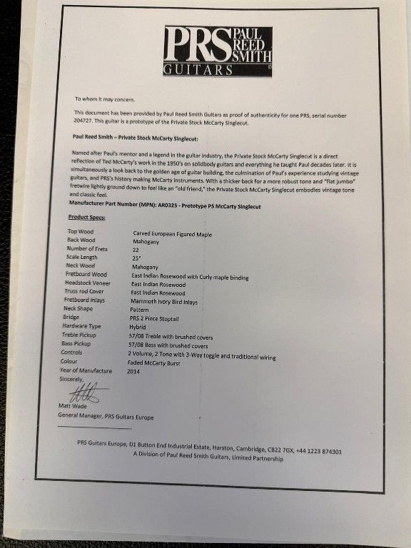 PRS PRIVATE STOCK MCCARTY SINGLECUT PROTOTYPE 2014 Oulu
