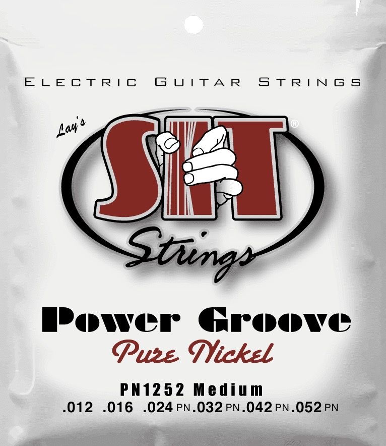 Our Power Groove Pure Nickel strings have a pure nickel cover-wrap over a hard-tempered hex core. This soft nickel alloy produces a string with great feel and intonation. Pure nickel will really bring out the tone in vintage guitars. These strings have been reformulated and re-introduced with new packaging in 2014. The exclusive S.I.T. Stay-In-Tune level wrap formula guarantees consistent tension and tone. All S.I.T. Strings have the Stay-In-Tune process at the end of the string near the ball-end to help prevent stretching and breakage.