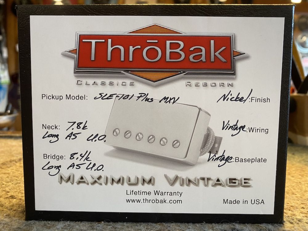 The SLE-101 Plus Limited has the same winder configuration as the SLE-101 Limited but with ThroBak custom cast unoriented A5 magnets and extra winds for more mid dominant power and bite. The unoriented A5 has the crunch of A2 plus the added mid projection of A5. Vintage spec. plain enamel magnet wire, Michigan hard maple wood spacer, vintage correct two conductor wire and threaded baseplates. These are among the best PAF pickup reproduction with ummatched vintage PAF humbucker pickup accuracy. Vintage wound on the Slug 101 and Leesona 102. Made in USA.