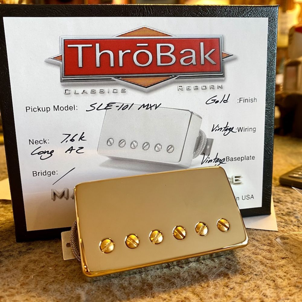 The flagship pickup that put ThroBak P.A.F. humbucker reproduction pickups on the map. If you want the best of classic A2 50's vintage PAF pickup tone this set delivers but without the low end mud often associated with modern Alnico 2 humbucker pickups. PE magnet wire is wound on the slug coils with the original Gibson Slug 101 winder and screw coils wound on the Leesona 102. The result is a complex tone with articulate clarity of the best PAF pickups of the 50's . A2 vintage clone sand cast magnets, custom milled Michigan hard maple wood spacer, vintage correct two conductor wire and threaded baseplate complete the picture making these the best humbucker pickups with vintage specs. in their class. Step back in time and get the vintage PAF pickups you always wanted today.